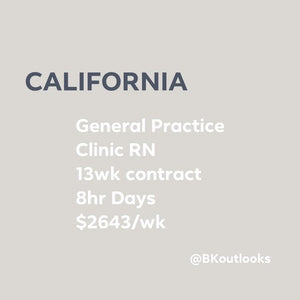 #california #travelnurseArcata, CAGeneral Practice / Clinic RN 13wk contract8hr DaysMAR ‘20 start date$2643/Weekly Gross: [$1400/Week Taxable ($35/...