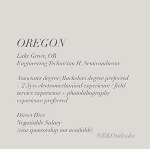Oregon - Direct Hire - Engineering Technician II, Semiconductor