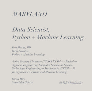 Maryland (Fort Meade) - Direct Hire - Data Scientist, Python + Machine Learning
