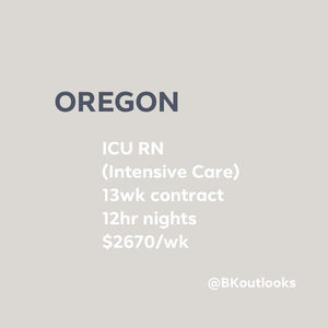 #oregon #coosbay #travelnurse #ICU #ICUnurse Coos Bay, ORICU RN (Intensive Care)13wk contract12hr nightsAPR 2020 start date$2670/Weekly Gross: [$15...