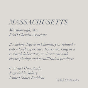 Massachusetts - Contract Hire - R&D Chemist Associate