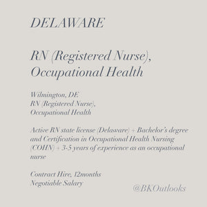Wilmington, DERN (Registered Nurse),Occupational Health Active RN state license (Delaware) + Bachelor’s degree and Certification in Occupational He...