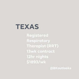 #texas #respiratorytherapist #RRT Snyder, TXRespiratory Therapist (RRT) 13wk contract12hr nightsAPR 2020 start date$1853/Weekly Gross:[$720/Week Ta...